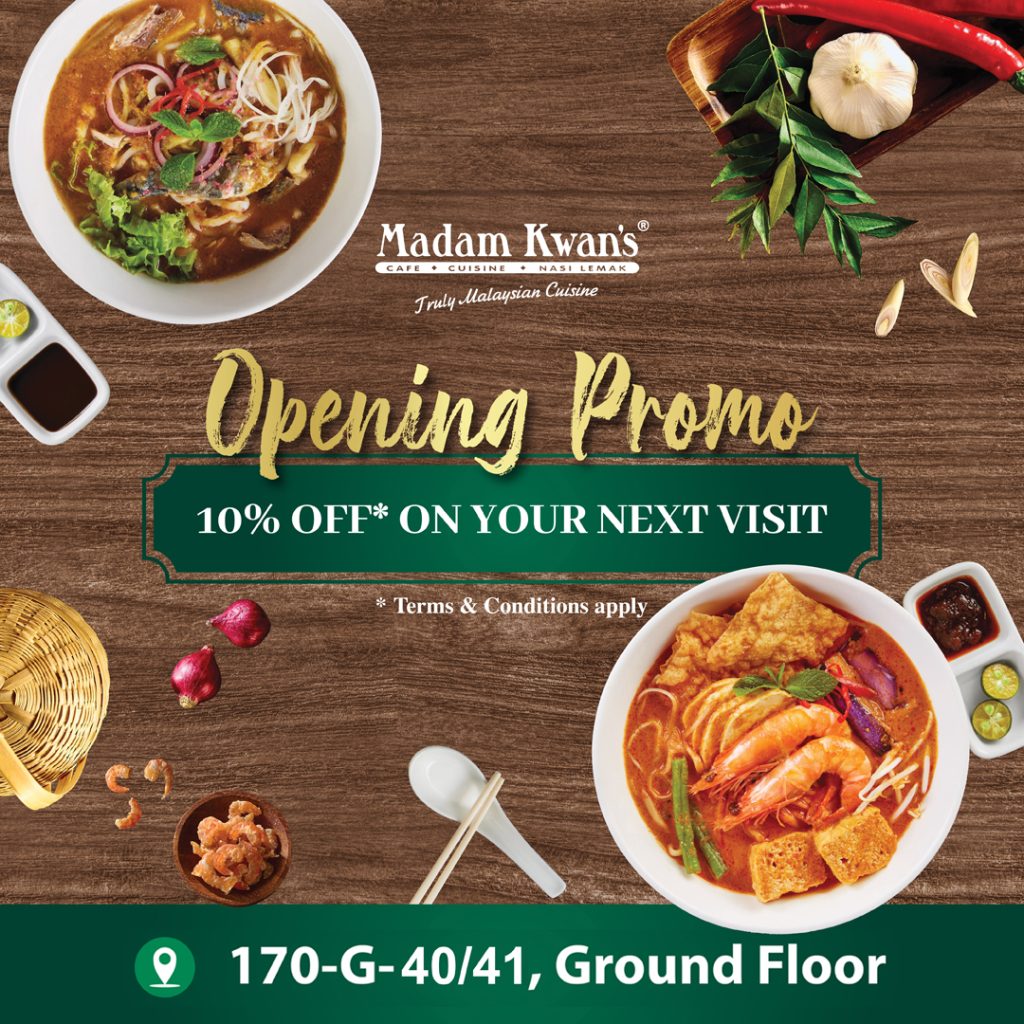 In celebration of our opening on 26 August (Tuesday), we are delighted to extend a token of appreciation — enjoy 𝟏𝟎% 𝐨𝐟𝐟 𝐨𝐧 𝐲𝐨𝐮𝐫 𝐧𝐞𝐱𝐭 𝐯𝐢𝐬𝐢𝐭* when you dine with us at 𝐌𝐚𝐝𝐚𝐦 𝐊𝐰𝐚𝐧’𝐬 𝐆𝐮𝐫𝐧𝐞𝐲 𝐏𝐥𝐚𝐳𝐚, 𝐏𝐞𝐧𝐚𝐧𝐠. 💚